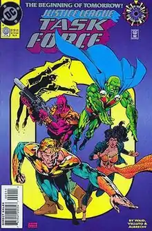 Justice League Task Force was an American monthly comic book series published by DC Comics from June 1993 to August 1996; it lasted 37 issues. At the time the Justice League was featured in three separate series: Justice League America, Justice League Europe (JLE) and Justice League Quarterly (JLQ). Justice League Task Force was a spinoff of Justice League Europe, a series which ran from April 1989 to May 1993. Like JLE, this team carried a United Nations charter which sanctioned their activities. In fact, JLTF was composed of several former JLE members. The team was called to action by Hannibal Martin, a representative of the U.N. He asked that Martian Manhunter select a "strike team" of fellow Justice League members and to "lead them on a very special mission".[1]