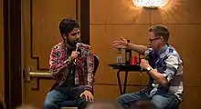 Justin Robert Young and Brian Brushwood hosting a show at Dragon*Con 2013