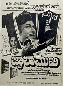 Jwaalamukhi (transl. Volcano) is a 1985 Indian Kannada-language film directed by Singeetham Srinivasa Rao.[1] The film featured Rajkumar, Gayathri, Thoogudeepa Srinivas, K. S. Ashwath and Mukhyamantri Chandru. The movie is based on a novel of same name by Vijay Sasanur.[2][3]