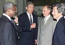 Koizumi with Kofi Annan, George W. Bush and Vladimir Putin, 20 July 2001
