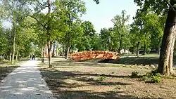 The park is a 40-hectare arboretum. For over 150 years there are pines, lindens, oaks and chestnuts, as well as lakes, promenades and bridges. In 2014, the renovation of the castle park started with the use of EU funds, from about 240 million HUF. In the first phase of the renovation, the central part of the park will be renewed, trees and shrubs will be planted, the previously dried-up lake and bridges and garden pavilions will be restored.[2]