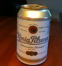 The brewery's most popular beer is König Pilsener.[3] König Alt, a beer brewed in the Rhineland Altbier style, was developed in the 1970s, but then discontinued along with König Export and König Malz, a malt beer. New products include the alcohol-free Kelts beer, renamed König Pilsener Alkoholfrei in 2005.[4] From 2006 to 2011, a beer-lemonade mix was available under the name König Pilsener Lemon.[5] In 2011, the production of König Pilsener Lemon was discontinued and a new beer-lemonade mix was introduced under the name of König Pilsener Radler.[6]