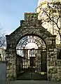 The interior of the centrally located synagogue is octagonal, 22.15 m in diameter with a smooth dome overhanging the walls at four points. Six cast-iron pillars hold the enclosed vault enclosed by a barrel vault.