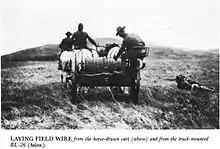 Laying wire from a K-1 cart, formerly known as Wire cart, type N