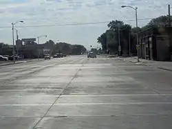 The Wichita-Hutchinson segment was straightened in the early 1970s, bypassing the towns of Maize and Mount Hope. In recent years, urban sprawl has brought the highway within city limits. Near the Amish community of Yoder, symbolic warning signs were placed on the road to warn drivers of the presence of carriages on the cross streets.