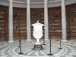 Functionally, the castle is divided into three parts. The main (central) building with exquisite halls was the residence of the family, with two-quarter circle adjacent lower wings with pillared colonnades where the guest rooms were situated. To those wings were connected other pavilions. On the right one is situated the mansion's chapel and theatre, which were finished in the first half of the 19th century. On the left one, there is an extensive library dating from the 16th to 19th century.