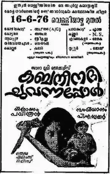 Kabani Nadi Chuvannappol (When the River Kabani Turned Red) is a 1975 Malayalam feature film directed by P. A. Backer, produced by Pavithran, and starring T. V. Chandran, Shalini, Raveendran and J. Siddiqui. This leftist political drama film came out during the Emergency period. It was the directorial debut of P. A. Backer, who won that year's awards for Best Director and Second Best Film at the Kerala State Film Awards.[1] Pavithran, who later directed many critically acclaimed Malayalam films produced the film.[2] T. V. Chandran, who also later went on to direct a bevy of award-winning films in Malayalam and Tamil, played the lead role.[3][4] After certain post-production controversies, the film debuted in theatres on 16 July 1976.