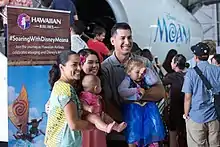 Kahele with his family visiting Hawaiian Airlines's Moana airplane