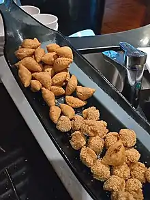 Also called "smiling sesame cookies" or "laughing balls", they are a popular dish during Lunar New Year for their resemblance to a smiling mouth.[1][2][3]