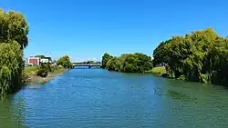 ![]() Looking downstream on the Kaiapoi River | |