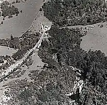 The eastern approach has two bridges over the Whatakao Stream. Bridge 42, 3 m (9.8 ft) from the portal, is 123 ft (37 m) and bridge 43, 106.7 m (350 ft) long.[9] The latter cost about $24,000[10] and rests on 4 piers. A 126 ft (38 m) cutting follows, then about a mile from the tunnel portal, Works Road crosses the line, followed by a 747 ft (228 m) long Wainui River bridge 45, 110 ft (34 m) above the river. Then Wainui South Road goes over the track, before it rejoins the old line at Apata.[3]