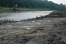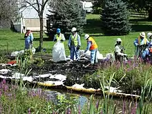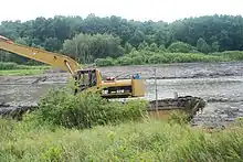 The oil was contained to a 25-mile (40 km) stretch of the Kalamazoo River as several hundred workers took part in the cleanup.[8] Regional EPA Director Susan Hedman estimated that it would take weeks to remove the bulk of the oil from the river, several months to clear oil from the flood plains, and several more months to clean the oil out of the marsh where the spill originated. However, a year later, a 35-mile stretch of the river remained closed.[9] Originally estimated at US$5 million,[10] by September 2011, cleanup costs passed $585 million and were expected to rise by 20 percent.[9] The cleanup expense by summer 2012 had totalled $765 million.[7] By November 2014, the total had risen to $1.21 billion, with an estimated $219 million in costs yet to be paid.[11]
