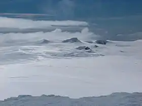 Kaliakra Glacier from Melnik Peak, with Vidin Heights in the background.
