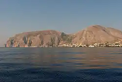 Kamari (Greek: Καμάρι) is a coastal village on the southeastern part of the Aegean island of Santorini, Greece, in the Cyclades archipelago with a population of approx. 1800 according to the 2001 census. It is part of the Municipality of Thira and is situated approximately 8 km away from the island's capital Fira. Kamari was built by residents of the nearby village of Episkopi Gonias, which was almost flattened by a devastating earthquake that hit Santorini in July 1956.