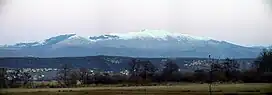 Kamešnica is a mountain in the Dinarides, located in the southern end of the Dinara Mountain Range on the border between Bosnia and Herzegovina (Canton 10) and Croatia (Dalmatia).[2] It is 1,851 metres (6,073 ft)[3] tall and stretches from the northwest white road pass Vaganj (1173 m) to the Buško Blato artificial lake. The tallest peak is Konj (Horse) 1,855 metres (6,086 ft),[1] which is located in Bosnia and Herzegovina and offer views of both sides of the border. In clear weather, it is possible to see the most remote areas of the Adriatic Sea and its islands. The vicinity's many trails and caves make it popular with hikers.