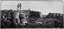 During the Siege of Kimberley, Kamfers Dam was the scene of a skirmish on December 9, 1899. Subsequently a large Boer cannon which started firing 96 lb. shells at the town on February 7, 1900 was stationed at Kamfers Dam. A number of cavalry sorties were made from Kimberley in attempts to capture it. The heavy gun and its crew however evaded capture after the relief of the siege, when its retreat was covered by Boer defensive positions at Dronfield.[10]