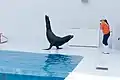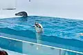 A three-year-old 2.5-meter 273-kilogram female northern elephant seal[20] was found on Sanze beach (38°42′27.4″N 139°39′47.7″E / 38.707611°N 139.663250°E / 38.707611; 139.663250), Tsuruoka on 16 October 2017.[21][22] She was weakened and injured[23] but recovered after receiving antibiotics at this Aquarium, growing to over 400-kilogram in March 2018.[24] She was named Naomi after a tennis player, Naomi Osaka by a public vote[25][26] and has been exhibited in a pool at Kamo.[27]