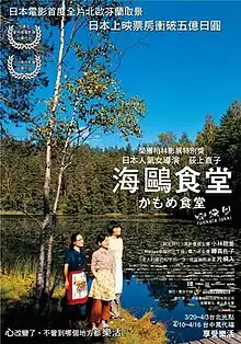 Kamome Diner (Japanese: かもめ食堂, Hepburn: Kamome shokudō) is a 2006 comedy film written and directed by Japanese director Naoko Ogigami, based on a novel by Yōko Mure. The film is set in the Finnish capital Helsinki, and follows a Japanese woman who sets up a diner serving Japanese food in the city, and the friends she makes in the process.