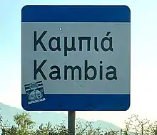 Kampia (Greek: Καμπιά) is a village close to Almirida on the north west coast of the island of Crete, Greece. It is located in Apokoronas, Chania regional unit.