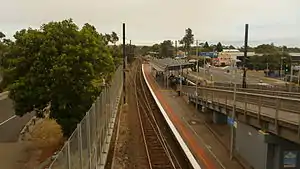 Kananook station opened on 25 August 1975, and was named after the nearby Kananook Creek. To accommodate the station and allow construction, in March 1974, the up and down lines were slewed.[5] At the same time, the current Klauer Street overpass, located at the up end of the station, was provided, replacing the Wells Road level crossing.[6]