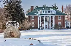 Kanawha, also known as Tuckahoe, is a historic home located at Luray, Page County, Virginia. It was built in 1921, and is a 2+1⁄2-story, Classical Revival style brick and tile-block dwelling on a poured-concrete foundation. It has a hipped roof covered with green Spanish tiles. The front facade features a semicircular Corinthian order portico. The house also has an enclosed Doric order rear portico, a porte-cochère, large hipped dormers, and a symmetrical composition. Also on the property are contributing gate pillars (c. 1923), an outbuilding (c. 1920), and weirs (Houn Spring) (c. 1881). The property was developed by Luray businessman and mayor Vernon H. Ford.[3]