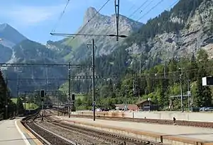 The station is also the northern terminus of the BLS car carrying shuttle train to Goppenstein station via the Lötschberg tunnel, with trains running every 30 minutes. There is no road across the Lötschen Pass, under which the tunnel runs, and the nearest alternative road crossings lie many kilometres to the east and west.[3]