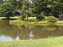 Kanjizaiō-in (観自在王院) was a Buddhist temple located in Hiraizumi in what is now southern Iwate Prefecture in the Tōhoku region of Japan. The temple fell into ruins during the Kamakura period; however, the pond from its gardens has been restored to its original dimensions, and has been designated a nationally designated Place of Scenic Beauty in 2005.[1] The ruins are also covered as part of the Special National Historic Site designation for neighboring Mōtsū-ji.[2] Together with other important sites in Hiraizumi, the ruins form part of the UNESCO World Heritage Site Historic Monuments and Sites of Hiraizumi.