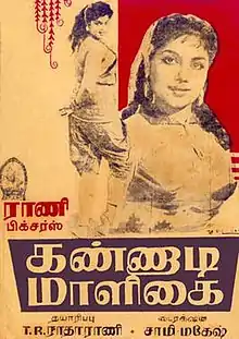 Kannadi Maaligai (transl.Mansion of mirrors) is a 1962 Indian Tamil-language action film directed by Sami-Mahesh and produced by T. R. Radharani under Rani Productions. Radharani also stars as the female lead along with M. R. Radha, S. A. Ashokan, V. Nagayya, S. D. Subbulakshmi and A. K. Mohan.[1]