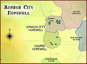 The Kansas City Hopewell were the farthest west regional variation of the Hopewell tradition of the Middle Woodland period (100 BCE – 700 CE). Sites were located in Kansas and Missouri around the mouth of the Kansas River where it enters the Missouri River. There are 30 recorded Kansas City Hopewell sites.[1]