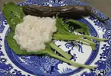 Kapampangan cuisine (Kapampangan: Lútûng Kapampángan) differed noticeably from that of other groups in the Philippines.[1][2] The Kapampangan kitchen is the biggest and most widely used room in the traditional Kapampangan household.[3] When the Philippines was under Spanish rule, Spanish friars and sailors taught Kapampangans the basics of Spanish cooking.[4] The Kapampangans were able to produce a unique blend that surprised the Spanish palate. Soon Spanish friars and government officials were entertaining foreign guests at the expense of Kapampangan households. In the late 18th century, the Arnedo clan of Apalit were commissioned by the colonial government to entertain foreign dignitaries that included a Cambodian prince and a Russian archduke.[5] Kapampangans were given the task of creating the meal and menu that was served in the proclamation of the First Philippine Republic in Malolos, Bulacan.[6]