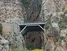 A deep narrow canyon is located on the other side of the street. It can be reached directly from the beach under the bridge, if no flowing water is present. The canyon has been formed from the abrasion of the rocks by flowing waters over thousands of years. The canyon ends after about 200 meters and has views to the steep walls. Entrance is free of charge.