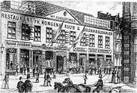 In 1811, Klein sold the property to stockings merchant Peter Hansen Feyerschou. Hos property was home to 43 residents in eight households at the 1840 census. Johan Christian Benzen Berring, a silk and textile merchant, resided on the ground floor with his wife Caroline Christiane Berring, his half-sister Helene Kirstine Bugge, his half-brother Willads Bugge, two male sercants and one maid.[9] Necoline Katrine Bedste, a club hostress, resided on the ground floor with two lodgers, two male servants and three maids.[10] Christian Jensen Spendrop, a manager, resided on the first floor with his wife Christine Marie Steffensen, their two-year-old son and one maid.[11] Bengt Aackerberg, an innkeeper, resided in the basement with his wife Ane Hansen, their three children (aged one to seven) and two maids.[12] André Verdier, a glovemaker, resided on the second floor of the rear wing with his wife Karen Lund , their three children (aged eight to 19) and one maid. The eldest son was an apprentice in his father's business.[13] Jensen, another innkeeper, resided in the basement of the building facing Lille Kongensgade with her son, one lodger and two maids. [14]