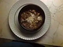 Karides güveç is a shrimp dish in Turkish cuisine.[1] It also contains tomato, tomato paste, garlic, onion, chili pepper and optionally mushroom. It is usually cooked and served in croks or relatively smaller sized güveçs, by adding melted kaşar on top of the dish.