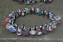 Karikázó is a Hungarian folk dance traditionally performed by women. It is a circle dance in 4