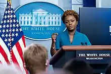 - ↑ Rascoe, Ayesha (May 26, 2021). "Karine Jean-Pierre Is The 1st Black Woman In Decades To Brief White House Press". NPR. Archived from the original on September 16, 2021. Retrieved May 27, 2021.