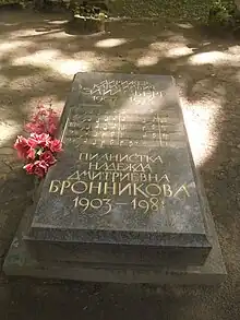 - ↑ Пискарёвское мемориальное кладбище; Old USSR Biographical Encyclopedia biography ends: "Урна с прахом в колумбарии Крематория"