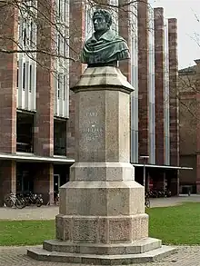 After Rotteck's death in 1840, the government prohibited any public gathering by which his admirers could organize the erection a memorial. Even the simple bronze bust which his friends erected on the plaza in front of the University of Freiburg in 1848 was removed in 1850 by order of the police. Only after the entry of the "new era" in 1863 were they able to erect it again, this time before his residence.