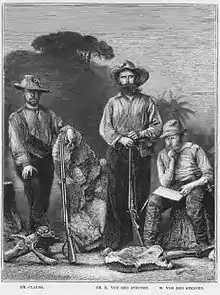Karl von den Steinen (center) and his companions on the first expedition in the Xingú region.