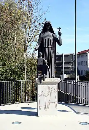 Karolina Gerhardinger statue at the Corbinian bridge in Freising