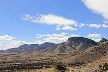 Along the Foothills Loop Trail hike, desert plants may be observed: ocotillo, creosote bush, mesquite, desert broom, acacia, wait-a-minute bush, scrub oak, barrel cactus, prickly pear, buckhorn cholla, and hackberry.[10]