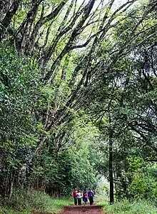 Karura Forest is now developed as a visitor's attraction for both local and international, with more than 16,000 entries per month. This includes creation of some 50 km of nature trails for walking, running and biking.[41] The first trail, which is four kilometres long and connects Limuru Road with Old Kiambu Road was opened in May 2009.[8] An electric fence has been built around the forest for security reasons.[42] Although 70% of Karura's visitors are Kenyan citizens, there is a growing appreciation by an international clientele as witnessed by Karura having received a TripAdvisor Certificate of Excellence for two years running (2014–15) and being listed as No. 4 out of 101 Things To Do in Nairobi.[43]