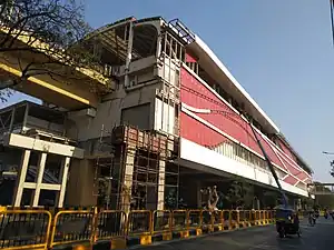 Kasarwadi is an elevated metro station on the North-South corridor of the Purple Line of Pune Metro in Pimpri Chinchwad, India. The station was opened on 6 March 2022 as an inauguration of Pune Metro.[1] From March 2022 to July 2023, the Purple Line operated between PCMC Bhavan and Phugewadi,[2] but from 1 August 2023 the section between Phugewadi and Civil Court metro station came into use, so trains run from PCMC Bhavan to Civil Court.[3]