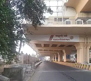 Kasturchand Park is an elevated metro station on the North-South corridor of the Orange Line of Nagpur Metro in the city of Nagpur, Maharashtra. This serves the Kasturchand Park area. It was opened on 21 August 2021.[1]