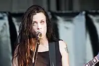 Katherine Lynne Bjelland (/ˈbjɛlənd/; born December 9, 1963) is an American musician. She rose to prominence as the lead singer, guitarist, and songwriter of the alternative rock band Babes in Toyland, which she formed in 1987. She has been noted for her unusual vocal style alternately consisting of shrill screams, whispering, and speaking in tongues, as well as for her guitar playing style, which incorporates "jagged" tones with "psychotic rockabilly rhythms".[2]