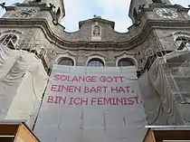 "As long as some men believe they are God, I will be a feminist.", Church of St. Egid, Klagenfurt am Wörthersee, Austria