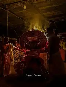 When the uncle and son Annukkan return after their funeral, they see Mandappan and Chemmarathi who have become gods.[5] Mandappan Chekavar's Theyyam is performed for the first time in the presence of his uncle, who names the theyyam as Kathivanoor Veeran.[5] This is the myth behind Kathivanoor Veeran.