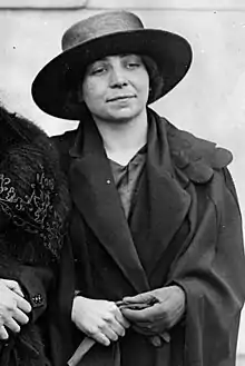 At Éamon de Valera's request,[3] Moloney was one of a delegation of seven republicans, with Stack, Countess Markievicz, and Michael O'Flanagan, which travelled to the United States to raise funds and publicity for the republican cause from April to June 1922. While on this tour, she also spoke at numerous public meetings.[1] At the outbreak of the Irish Civil War, she was one of three women, including Mary MacSwiney and Linda Kearns,[3][4] who stayed behind with the relocated anti-treaty headquarters garrison in the Hammam Hotel after they lost the Four Courts. The women survived a week-long siege under heavy shelling by the forces of the Free State. From June 1922, she was an active member of the Irish Republican Prisoners' Dependants' Fund, taking the role of general secretary from December 1922 until September 1924, which saw her travel across Ireland to distribute relief. During this work, she was arrested for possession of papers relating to the Fund, and was imprisoned with the general population in Cork County Jail. She went on hunger strike until she and colleague were transferred to the Cork City Jail in early 1923. Between September 1924 and April 1925, she toured Australia raising money for the Fund.[1][3][5]