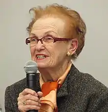 ![]() Katie Hurley speaking at the University of Alaska Fairbanks in March 2013 as part of a panel discussing the history of the Alaska Legislature. | |