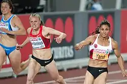 ![]() Paplauskaya (center) at the 2012 European Championships. | |