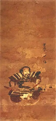 Shibata Katsuie (柴田 勝家, 1522 – June 14, 1583) or Gonroku (権六) was a Japanese samurai and military commander during the Sengoku period. He served Oda Nobunaga as one of his trusted generals, has severely wounded in the 1571 first siege of Nagashima, but then fought in the 1575 Battle of Nagashino and 1577 Battle of Tedorigawa.[1]